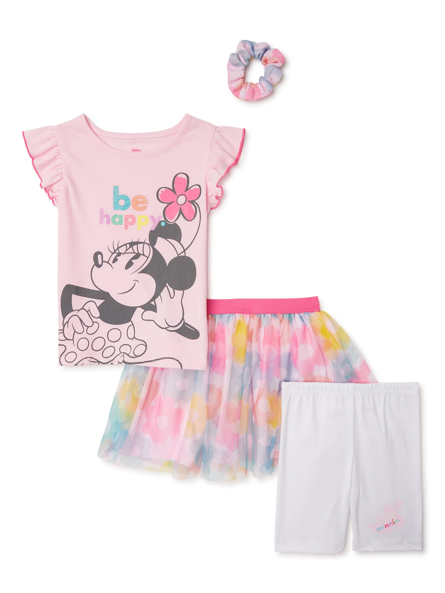 Minnie Mouse Baby Toddler Girls Flutter Sleeve Top Skirt Biker Shorts Scrunchie 4 Piece Outfit Set Sizes 12m 5t Walmart Com